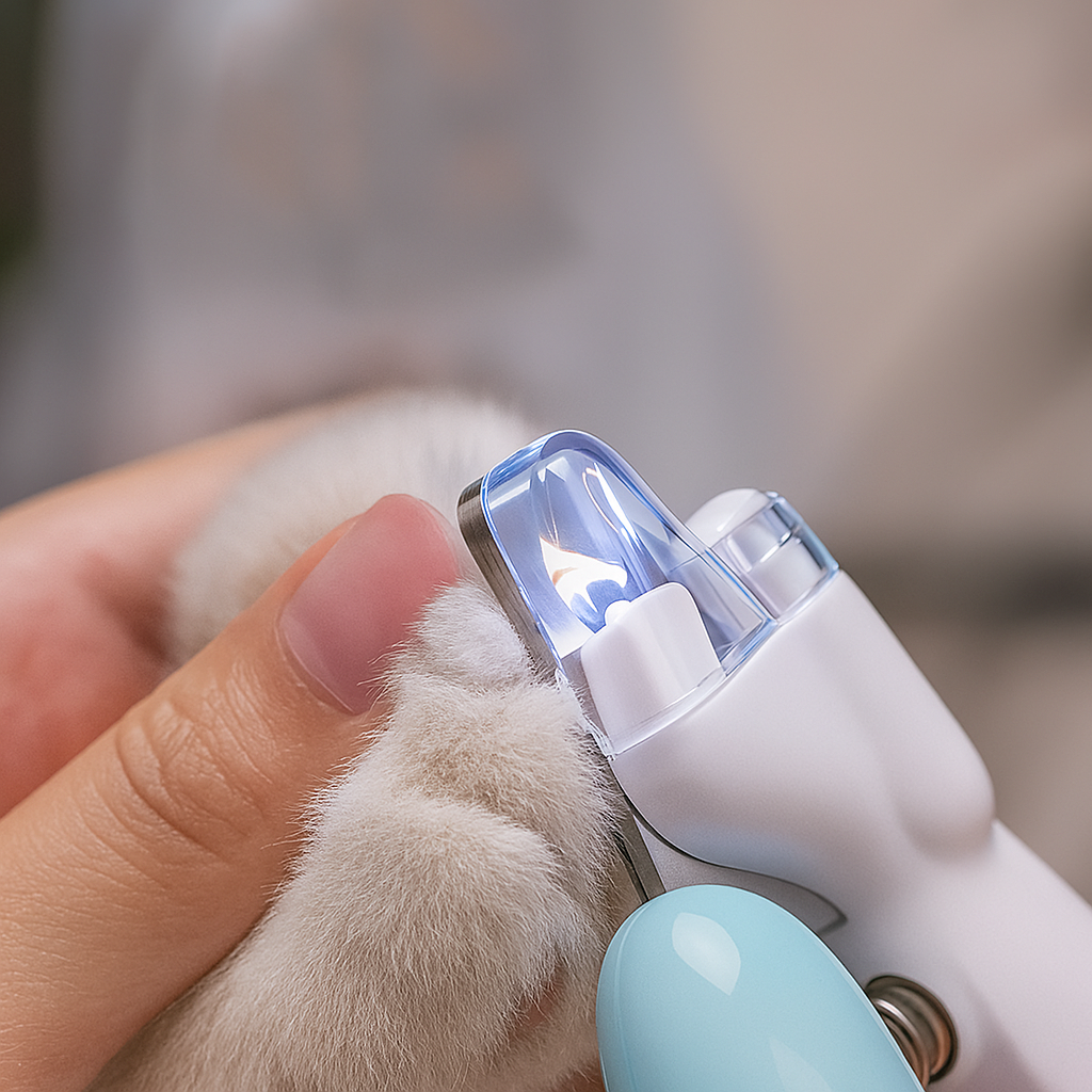Tired of messy, stressful nail trims? Blone® BrightClip lets you see the bloodline clearly, ensuring safe and accurate cuts every time. The sharp crescent blade handles even thick nails effortlessly, while the ergonomic handle fits comfortably in your hand. A protective cap prevents nail fragments from flying, and the safety lock keeps things secure when not in use. It's the smart, stress-free way to groom your pet at home.